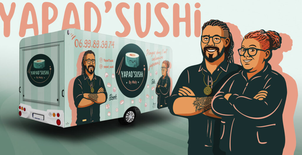 Pour accompagner le développement de la communication du foodtruck Yapad’Sushi, nous avons pris en charge la création graphique complète du covering de leur véhicule, ainsi que l’impression et la pose de l’ensemble des supports de communication nécessaires à son activité. Pour le menu, nous avons réalisé une mise en page claire, lisible et appétissante, adaptée […]