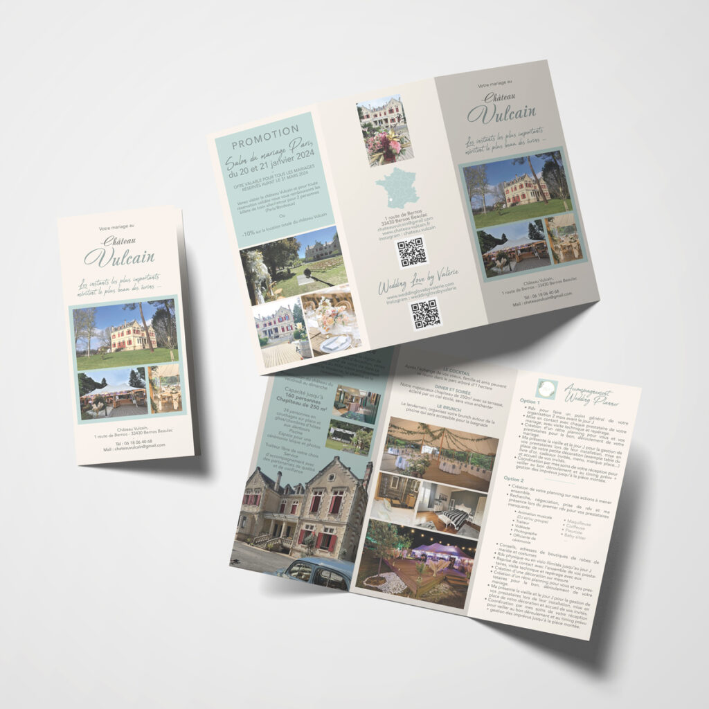 Pour le Château Vulcain, situé à Bernos-Beaulac, AllGraphik a conçu un dépliant A4 3 volets ainsi qu’un kakémono afin de valoriser ce magnifique lieu de réception. L’objectif était de créer des supports élégants et cohérents avec l’image du domaine, en mettant en avant son cadre d’exception et ses prestations haut de gamme. Grâce à un […]