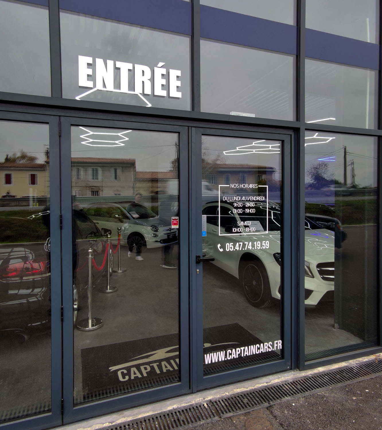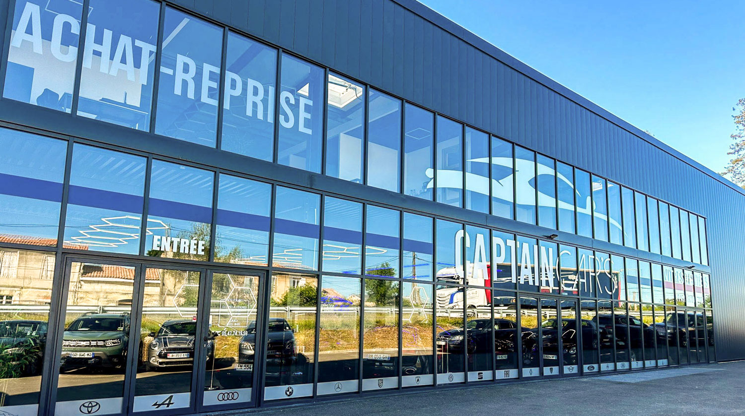 Ces réalisations renforcent la visibilité de Captain Cars tout en respectant son image haut de gamme. Ce projet illustre l’expertise d’AllGraphik en signalétique et communication visuelle pour le secteur automobile en Gironde.